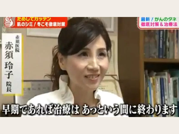 日光角化症(早期皮膚癌)の簡単な治療方法として、液体窒素で治療をおこなう様子が紹介されました。