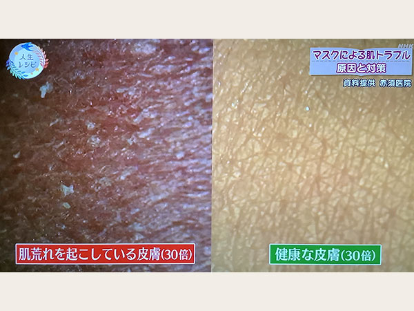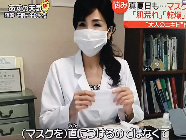 2021年2月26日放送の「あしたも晴れ!人生レシピ(マスクの悩みを解決!肌荒れ対策 メーク術)」で、マスク肌荒れの2大原因、摩擦と蒸れのメカニズムと対策を解説しました。